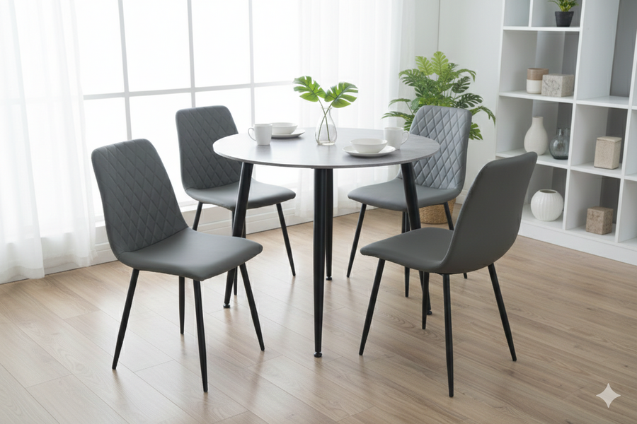 Argenta 90cm Round Dining Set With Dark Grey Chairs