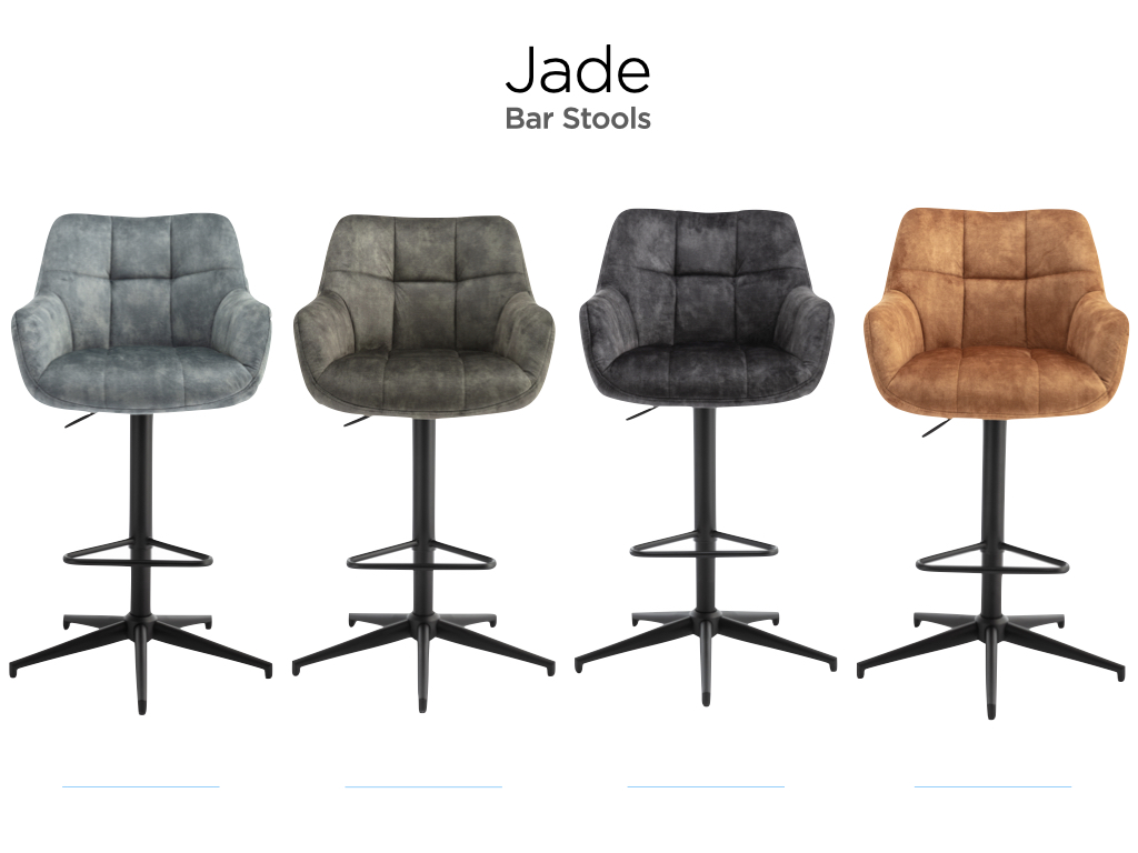 Elevate Your Comfort in Style Introducing our New Jade Gas Lift Bar Stools — where comfort meets contemporary design. Upholstered in premium fabric and available in four on-trend shades — Charcoal, Stone Blue, Olive, and Rust — these stools bring effortless sophistication to any space.With a smooth gas lift mechanism for easy height adjustment and a generously cushioned seat, they offer the perfect balance of function and comfort. Whether for your kitchen island, breakfast bar, or entertaining area, these stools are designed to lift your space — and your seating experience — to a new level.
