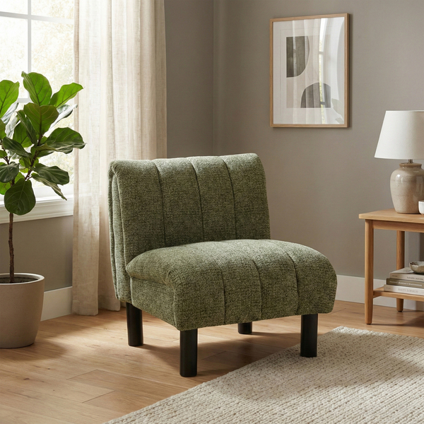 This chair is the ultimate master of understated texture. It perfectly bridges the gap between mid-century cool and contemporary comfort, making it a versatile "hero" piece for any modern apartment or home office. Bring a calm, organic energy to your space with this stunning low-profile lounge chair. Its deep vertical channel stitching creates a sophisticated rhythmic look while providing structured comfort that holds its shape, whether you’re settling in for a morning coffee or an evening read.
